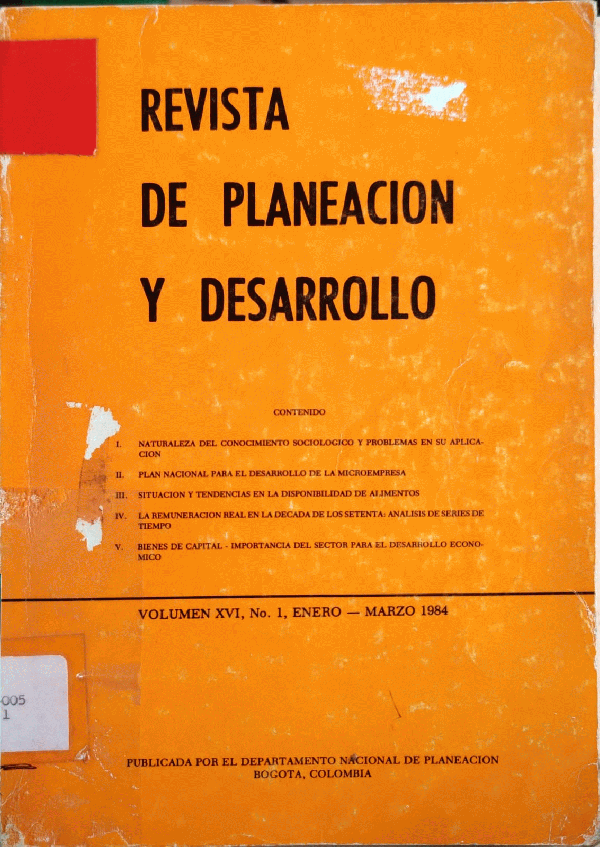Imágenes para REVISTA DE PLANEACION Y DESARROLLO VOLUMEN XVI No.1, ENERO-MARZO 1984 Rengifo Pardo, Clemencia, Gómez Carmona Silverio