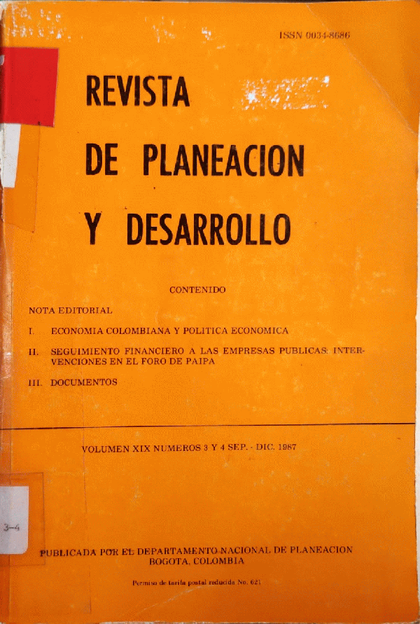 Imágenes para REVISTA DE PLANEACION Y DESARROLLO VOLUMEN XIX NUMEROS 3 y 4 SEP.DIC.1987 Giraldo, Samper Marcela, Gil Vivas, Gladys, Zuleta Lleras, Ignacio