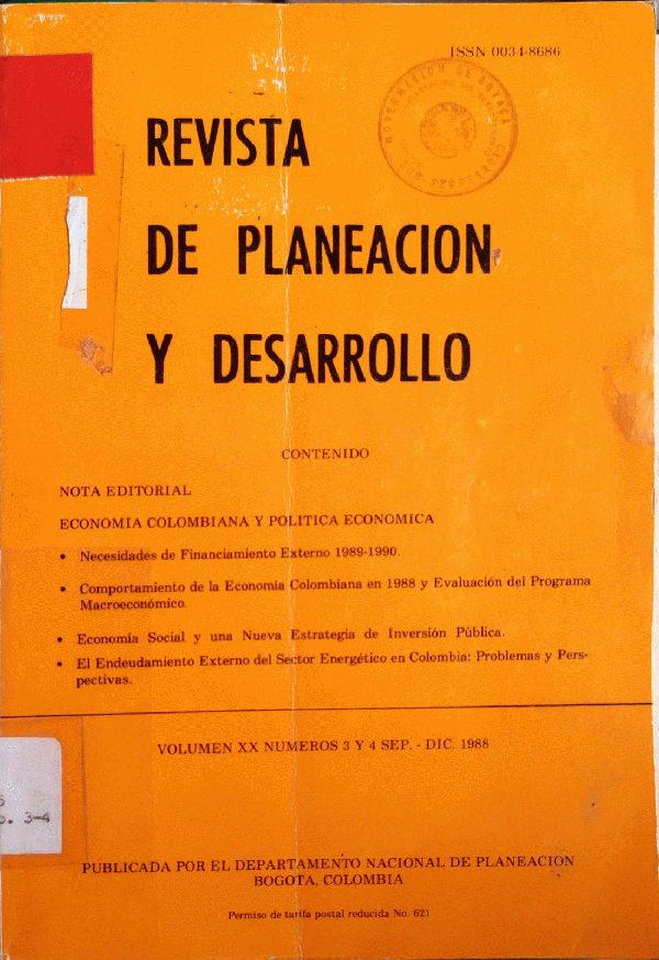 Imágenes para : REVISTA DE PLANEACION Y DESARROLLO VOLUMEN XX NUMEROS 3 y 4 SEP- DIC 1988 Giraldo, Samper Marcela, Gil Vivas, Gladys, Zuleta Lleras, Ignacio