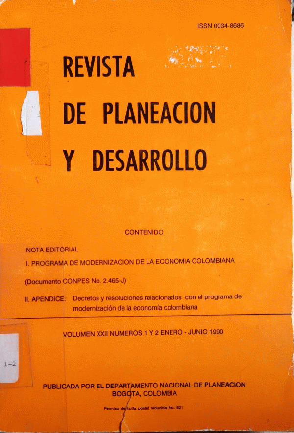 Imágenes para REVISTA DE PLANEACION Y DESARROLLO VOLUMEN XXII NUMEROS 1 y 2 ENERO – JUNIO 1990 Giraldo Samper, Marcela, Nel Ospina, Pedro, Serna Vásquez, Mónica