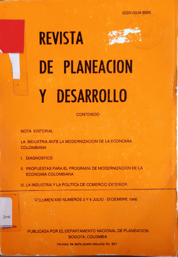 Imágenes para REVISTA DE PLANEACION Y DESARROLLO VOLUMEN XXII NUMEROS 3 y 4 JULIO – DICIEMBRE 1990 Giraldo Samper, Marcela, Serna Vásquez, Mónica
