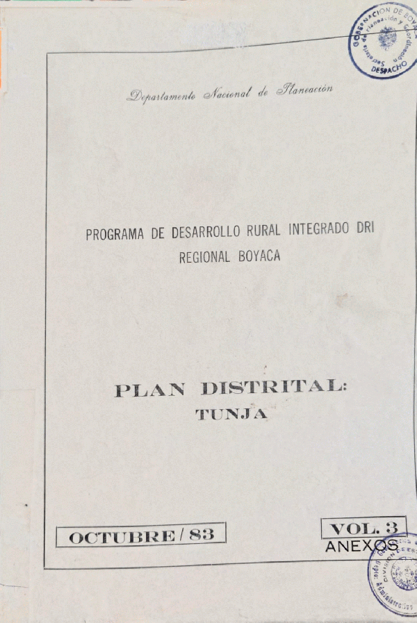 Imágenes para PROGRAMA DE DESARROLLO RURAL INTEGRADO DRI REGIONAL BOYACA. PLAN DISTRITAL: TUNJA. Gómez León, Alfonso, Camargo, R, Jorge E. Camargo R.