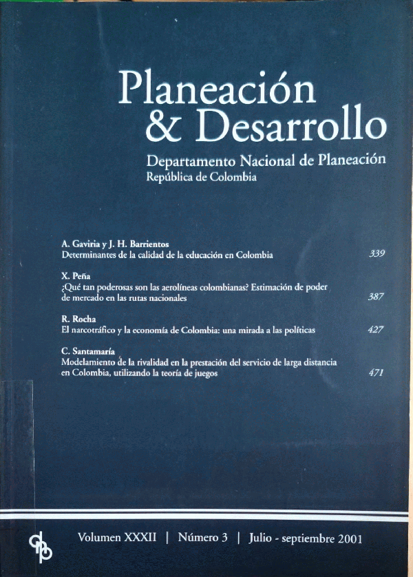 Imágenes para Planeación y Desarrollo Volumen XXXII/ Número 3/ Julio- septiembre 2001 Echeverri Garzón, Juan Carlos, González Estrada, Tomas